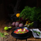 Borschtsch wschodnioeuropejski klasyk z czerwoną modlitwą