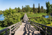 Zdjęcie "Rzeka płynie wśród zwykłego. Na brzegu rosną zieleni drzew i krzewów. Blue sky znajduje odzwierciedlenie w ciemne wody. Ołoniec Karelia, Federacja Rosyjska." może być wykorzystywane do celów osobistych i komercyjnych zgodnie z warunkami zakupionej licencji Royalty-free. Obraz jest dostępny do pobrania w jakości wysokiej rozdzielczości do 5760x3840.