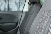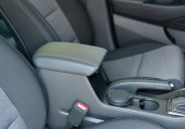 Otwarta skrzynka między przednimi siedzeniami samochodowymi