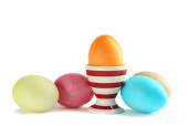 Kolorowe kubki jaj z jajami izolowane na białym tle