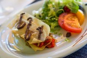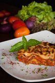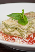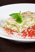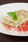 sosy lasagne wegetariańska z warzyw, pomidorami i pesto
