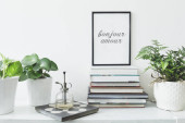 Zdjęcie "Nowoczesne wnętrze biura domowego z drewnianym biurkiem, książki, laptop, zabytkowe ilustracje roślin, lamp i akcesoriów biurowych." może być wykorzystywane do celów osobistych i komercyjnych zgodnie z warunkami zakupionej licencji Royalty-free. Obraz jest dostępny do pobrania w jakości wysokiej rozdzielczości do 5760x3840.