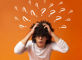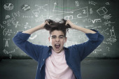 portret młodzieńca z desperate wyrażenie i oznaki przesłuchań, stres