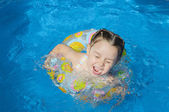 słodkie nastolatek dziewczyna noszenie strój kąpielowy w odkryty basen w ogród