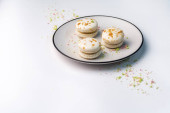 Słodkie bułeczki z krem czekoladowy, przyprawy i jagody na ciemnym tle. Selektywny fokus, płytkie Dof. Zdjęcie zrobione na warsztat.