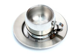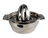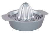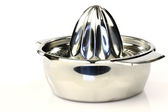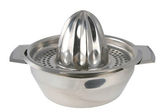 Zbliżenie wyciskacz soku metalicznej na białym tle