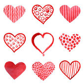 Zestaw akwarela ręcznie malowane czerwone serca. Symbol miłości.