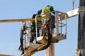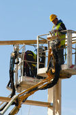 Rigger pomaga Żuraw, utrzymanie równowagi i kierunku.