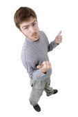 Zdjęcie "młody człowiek dorywczo będzie kciuk w" może być wykorzystywane do celów osobistych i komercyjnych zgodnie z warunkami zakupionej licencji Royalty-free. Obraz jest dostępny do pobrania w jakości wysokiej rozdzielczości do 5760x3840.
