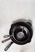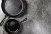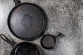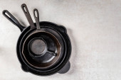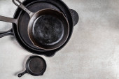 Zdjęcie "Kilka Patelnie żeliwne lub Skillets zdrowe gotowanie na szarym tle" może być wykorzystywane do celów osobistych i komercyjnych zgodnie z warunkami zakupionej licencji Royalty-free. Obraz jest dostępny do pobrania w jakości wysokiej rozdzielczości do 5760x3840.