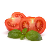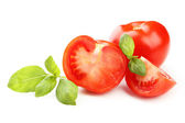pomidory z zielonych liści i bazylia na białym tle