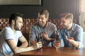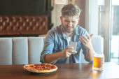 pijany mężczyzna siedzący przy stoliku w kawiarni, picie piwa