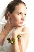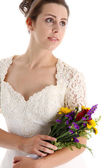 portret panny młodej z bukietem tulipanów