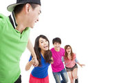 Zdjęcie "szczęśliwy grupa młodych z kciuki" może być wykorzystywane do celów osobistych i komercyjnych zgodnie z warunkami zakupionej licencji Royalty-free. Obraz jest dostępny do pobrania w jakości wysokiej rozdzielczości do 5760x3840.