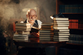 Zdjęcie "Akademicki profesor uśmiecha i Wyświetlono książek w bibliotece, wiedzę i edukację koncepcji" może być wykorzystywane do celów osobistych i komercyjnych zgodnie z warunkami zakupionej licencji Royalty-free. Obraz jest dostępny do pobrania w jakości wysokiej rozdzielczości do 5760x3840.