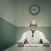 Dojrzałe biznesmen, patrząc na jego wiele osobowości i wyrażeń na zbiór wiszące portrety: umysł samooceny i koncepcja emocje