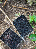 Kobieta, zbieranie Dzikie jeżyny w sierpniu, Belgia
