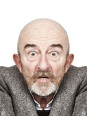 Rozczarowanie smutny starszy mężczyzna pozowanie na białym tle, headshot