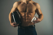 Zdjęcie "Doping, anaboliczne, białka, steryd, sport witaminy, kulturysta i kulturystyki. Mięśni, silne, muskularne. «««Diety, fitness. Człowiek z mięśni ciała trzymać słoik pigułki, sport. Sportowca trzymać diety pill." może być wykorzystywane do celów osobistych i komercyjnych zgodnie z warunkami zakupionej licencji Royalty-free. Obraz jest dostępny do pobrania w jakości wysokiej rozdzielczości do 5760x3840.