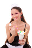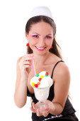 blondynka kręcone dziewczyna uśmiechając się, trzymając wielki lizak
