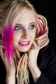 młody kręcone blond dziewczynka gospodarstwa wielki lizak