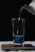 Herbata z groszkiem. Wlej do szklanki niebieskiej herbaty. Spawanie