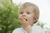 Piękna mała dziewczynka jedzenie