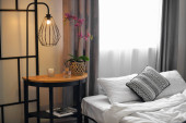 Wnętrze nowoczesnego pokoju z wygodną sofą