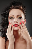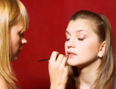 kobieta o makijażu stosowane przez charakteryzator