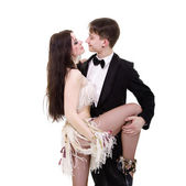zbliżenie szczęśliwa para młodych, razem