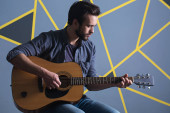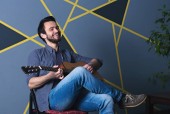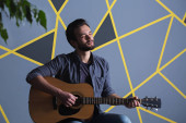 Zdjęcie "Młody przystojny mężczyzna z brodą trzyma gitarę" może być wykorzystywane do celów osobistych i komercyjnych zgodnie z warunkami zakupionej licencji Royalty-free. Obraz jest dostępny do pobrania w jakości wysokiej rozdzielczości do 5760x3840.
