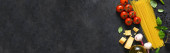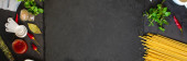 makaron, długi, Spaghetti lub Bucatini (składniki na makaron i sos) zestaw składników. tło żywności. miejsce