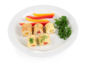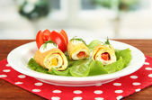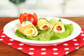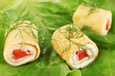 bułki jajko krem sera i papryki, na płycie, z bliska