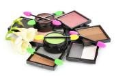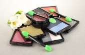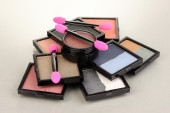 jasne cienie i Pędzle gąbkowe Fundacji na szarym tle