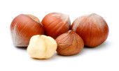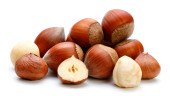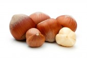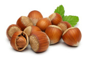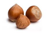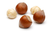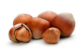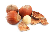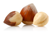 Orzechy laskowe na białym tle. Makro, strzał studio.