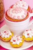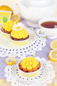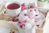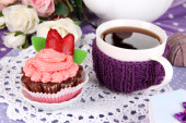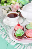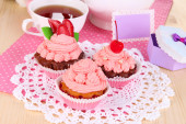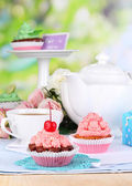 piękne Truskawkowe babeczki i smaku herbaty na stół szczegół