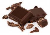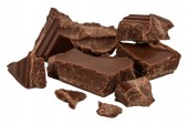 Kawałki czekolady mlecznej izolowane na białym tle z góry widok.