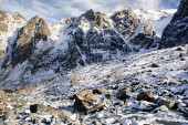 Zdjęcie "Szczyt góry pod śniegiem i niebieskie niebo. Wspinaczki skały, alipinism. Zimowa panorama wąwozu górskich Ałtaju." może być wykorzystywane do celów osobistych i komercyjnych zgodnie z warunkami zakupionej licencji Royalty-free. Obraz jest dostępny do pobrania w jakości wysokiej rozdzielczości do 5760x3840.
