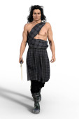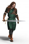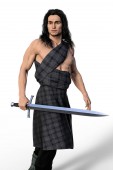 3d, cyfrowy ilustracja przystojny szkocki Wojownik lub Highlander ze szpadą.