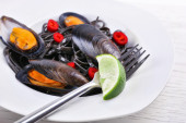 przekąska małże i cytryny na wazon na pokój tło zbliżenie