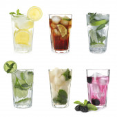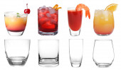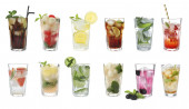 Zestaw koktajle z kulkami melona i arbuza na białym tle