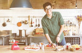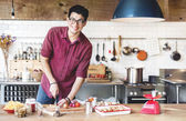 Mężczyzna Dokonywanie ciecierzycy i smażone kapusta na obiad