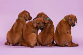 Trzy ładne szczenięta na różowym tle - tajski ridgeback