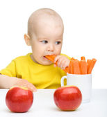 Zdjęcie "mały chłopiec jest jedzenie marchew" może być wykorzystywane do celów osobistych i komercyjnych zgodnie z warunkami zakupionej licencji Royalty-free. Obraz jest dostępny do pobrania w jakości wysokiej rozdzielczości do 5760x3840.