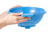 Zielona plastikowa miska w ręku