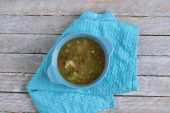 Zupa grochowa w pomarańczowy płyta, miejsce dla tekstu