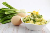 Zdjęcie "Sałatka z ramson i jaj na desce" może być wykorzystywane do celów osobistych i komercyjnych zgodnie z warunkami zakupionej licencji Royalty-free. Obraz jest dostępny do pobrania w jakości wysokiej rozdzielczości do 5760x3840.