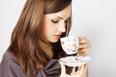 dwóch przyjaciół, rozmowy, picie herbaty i śmiejąc się