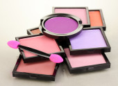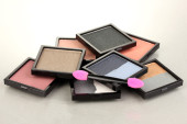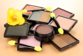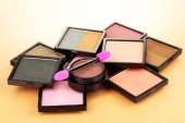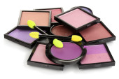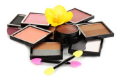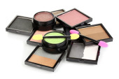 jasne cienie i Pędzle gąbkowe Fundacji na białym tle