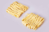 Zdjęcie "Suche cienki makaron walcowany kwadratowy kształt. Capelli d'angelo, włosy anioła - makaron. Włoskiego makaronu tagliatelle. Dania kuchni włoskiej. Makaron jajeczny. Makaron tagliatelle zagnieździć na białym tle na białym tle" może być wykorzystywane do celów osobistych i komercyjnych zgodnie z warunkami zakupionej licencji Royalty-free. Obraz jest dostępny do pobrania w jakości wysokiej rozdzielczości do 5760x3840.
